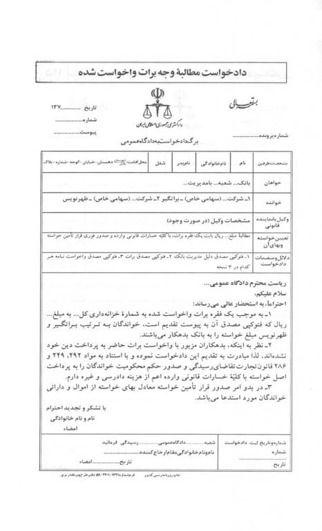 دادخواست مطالبه ی وجه برات واخواست شده - دادخواست مطالبه ی وجه برات واخواست شده