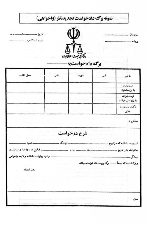 نمونه برگ دادخواست تجدید نظر (واخواهی) - نمونه برگ دادخواست تجدید نظر (واخواهی)